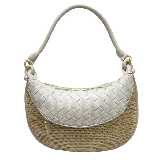 CAMILE Raffia Saddle Bag, Milk