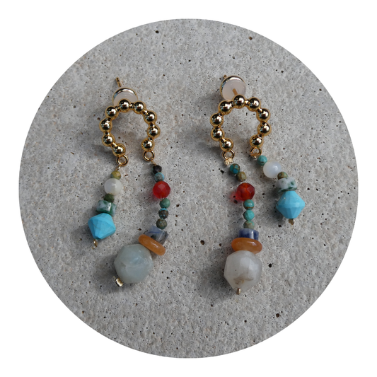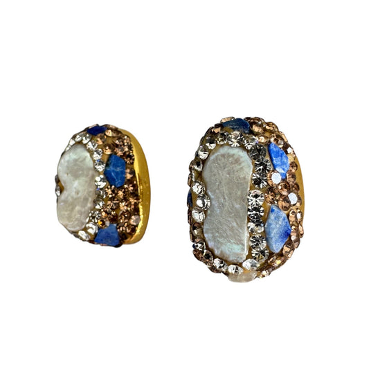 074 Multi Coloured Shell Statement Earrings & Pearls
