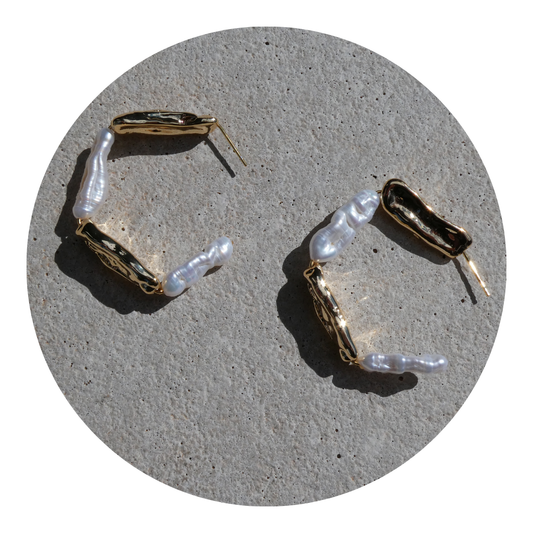 079 Natural Pearl & Gold Statement HoopEarrings