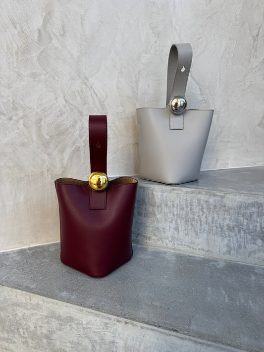 REMI Bucket Bag with Gold Bubble Lock, Burgundy