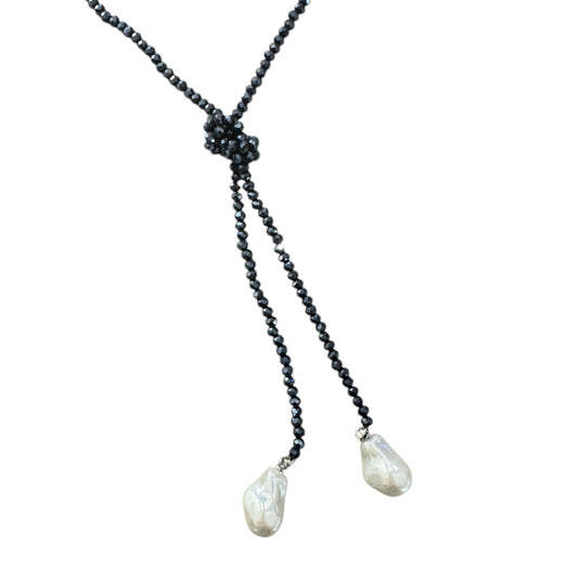 0002 (Long) Beaded Necklace with Faux Pearl Ends, Black