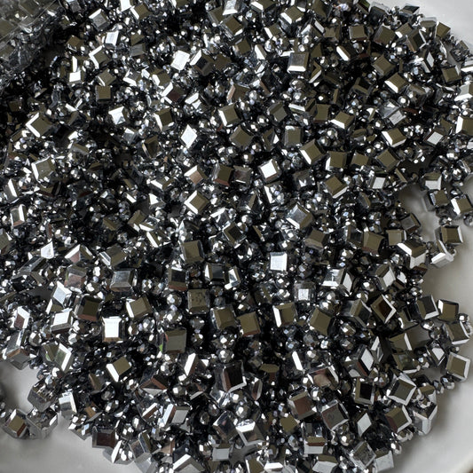 0006 Beaded Long Necklace, Pewter