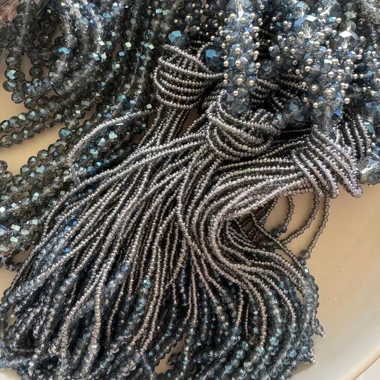 0004 Beaded Long Necklace, Denim