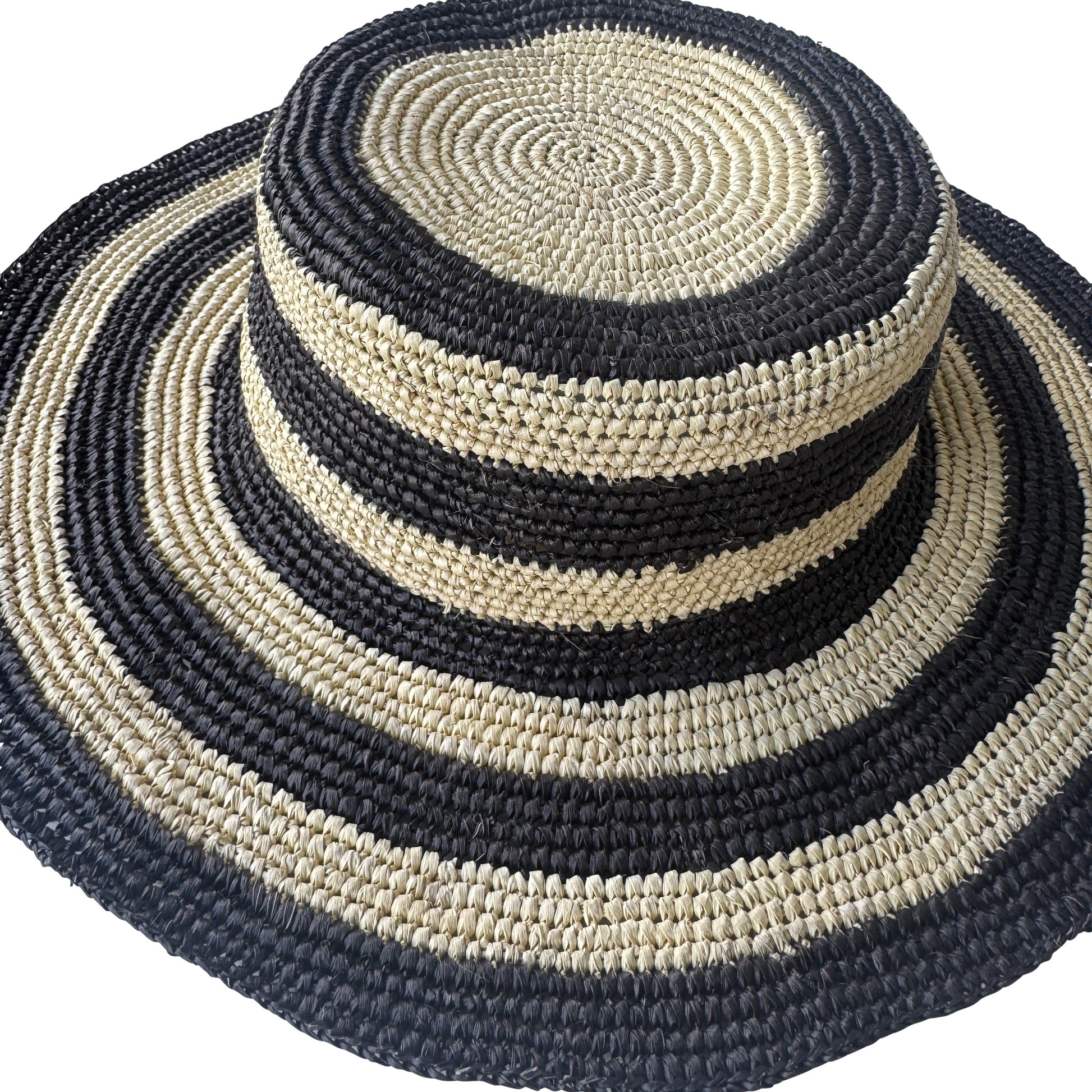 ROLLABLE, Raffia Hat in Black/Natural Combo - Size Large